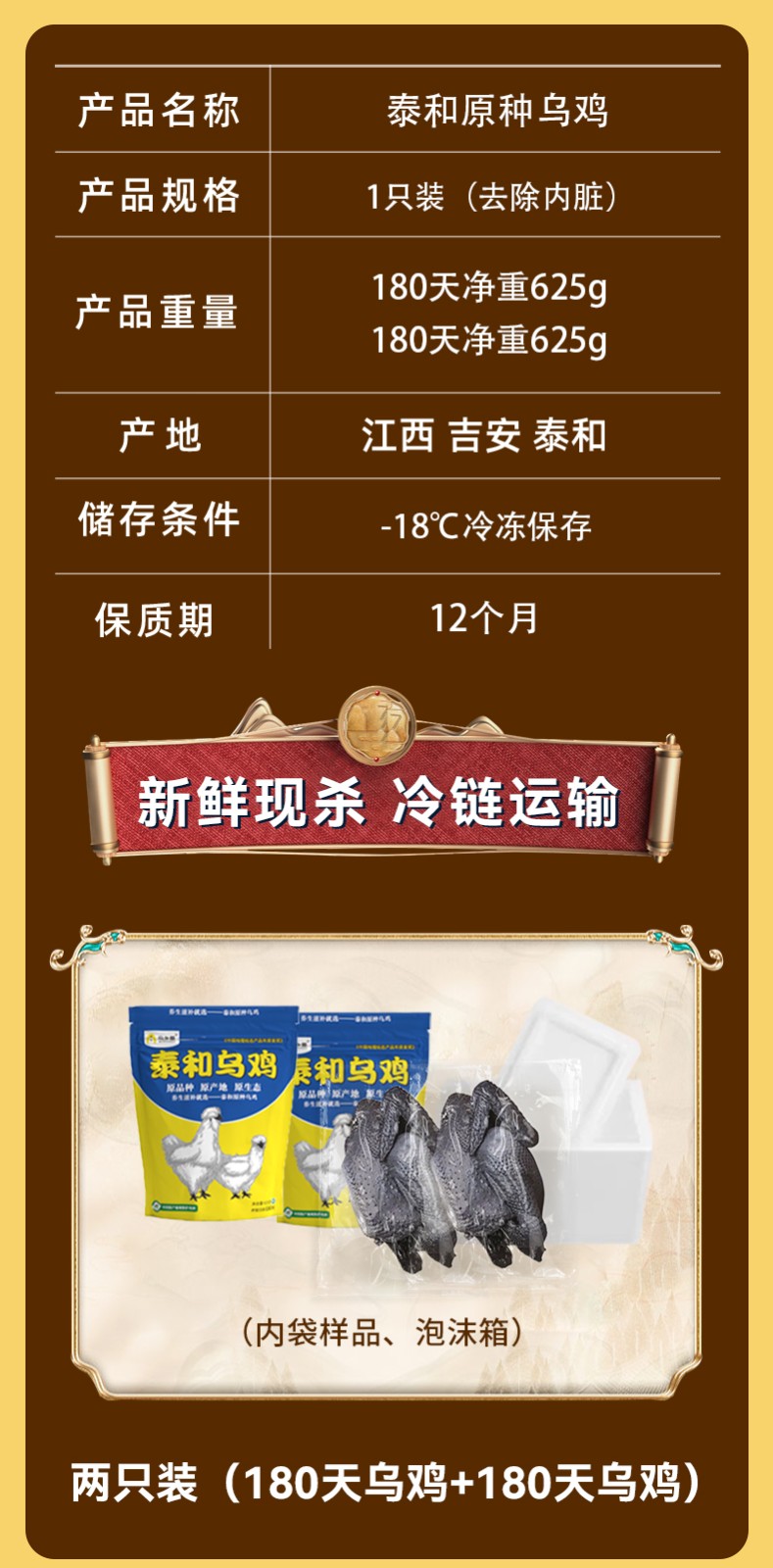 泰和乌鸡/180天(母鸡)2只装