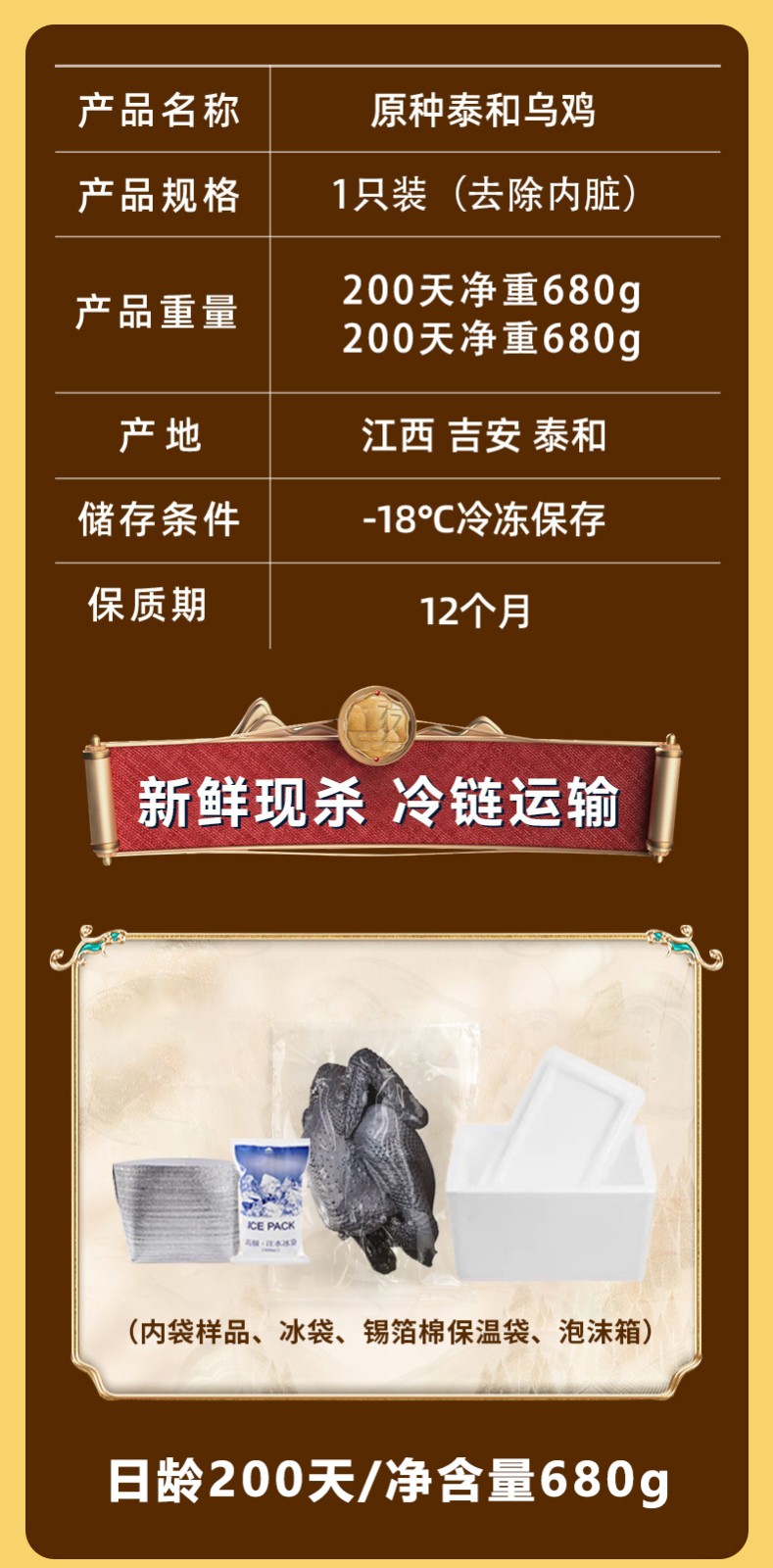 泰和乌鸡/200天(公鸡)2只装 680克(去内脏)*2